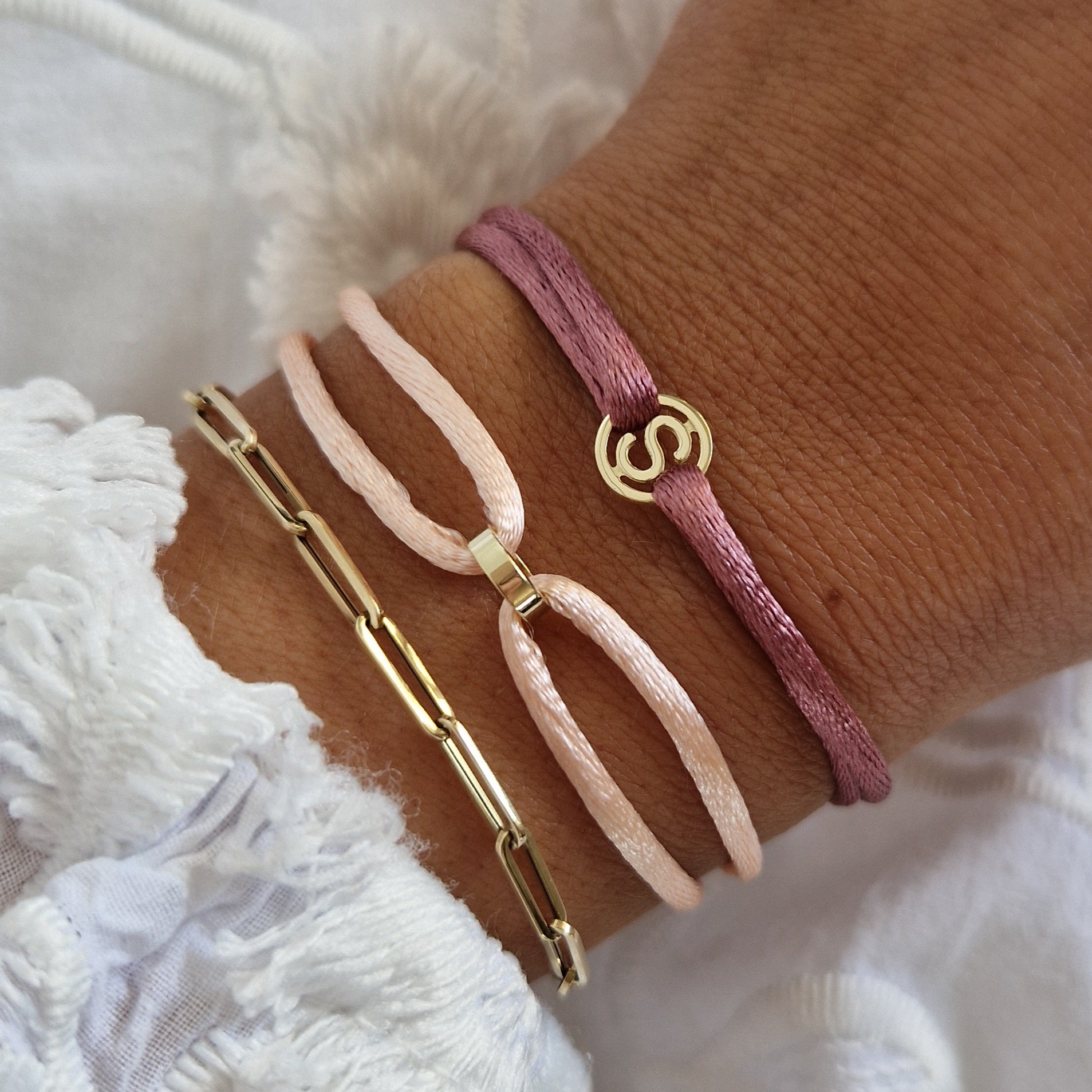 Personalize this Charm Bracelet Mini and choose an initial. The color of the satin cord is the color we knot for you around the bracelet. Extra satin cord 1 and extra satin cord 2 are the spare colors. Each piece of jewelry is unique and handmade especially for you by our goldsmiths.