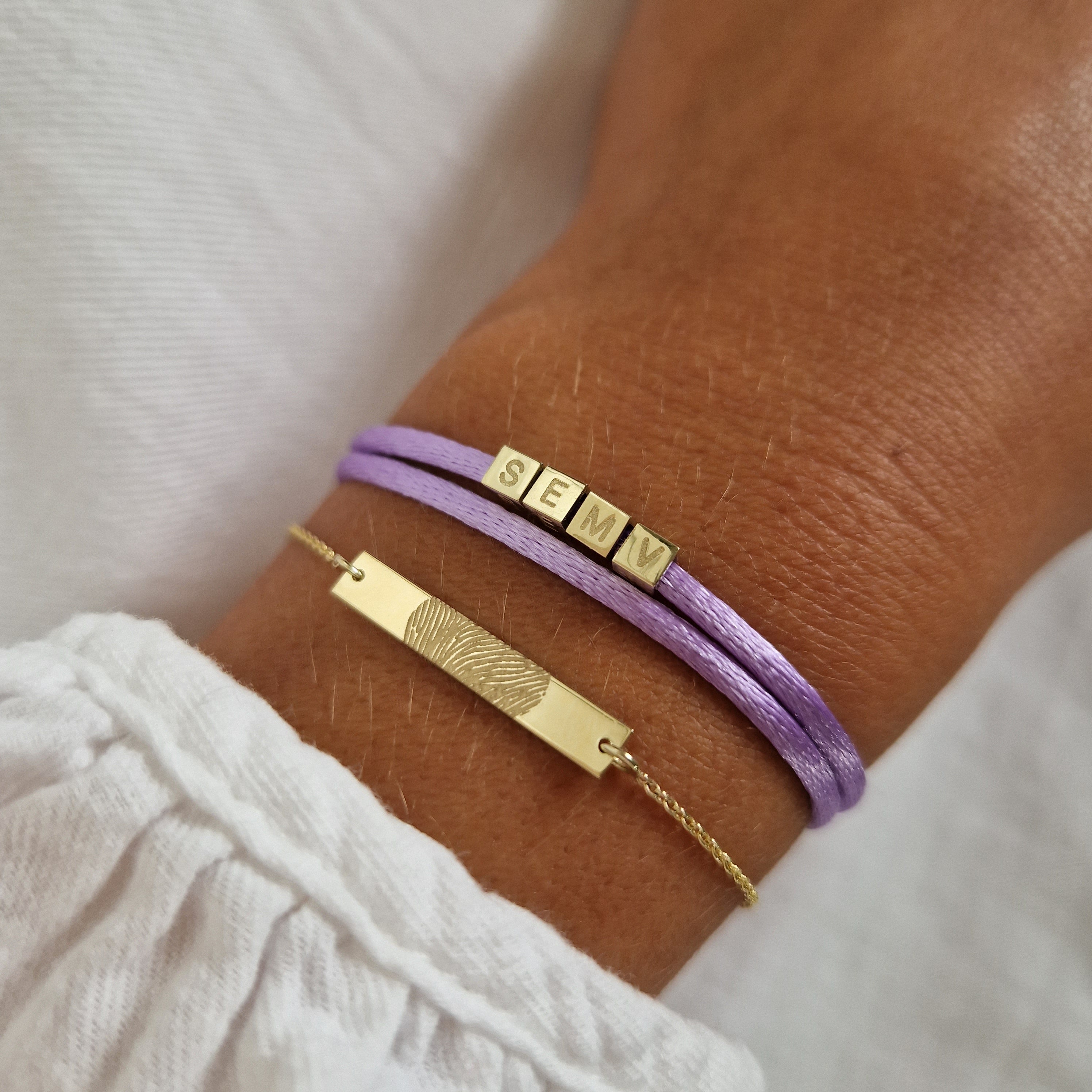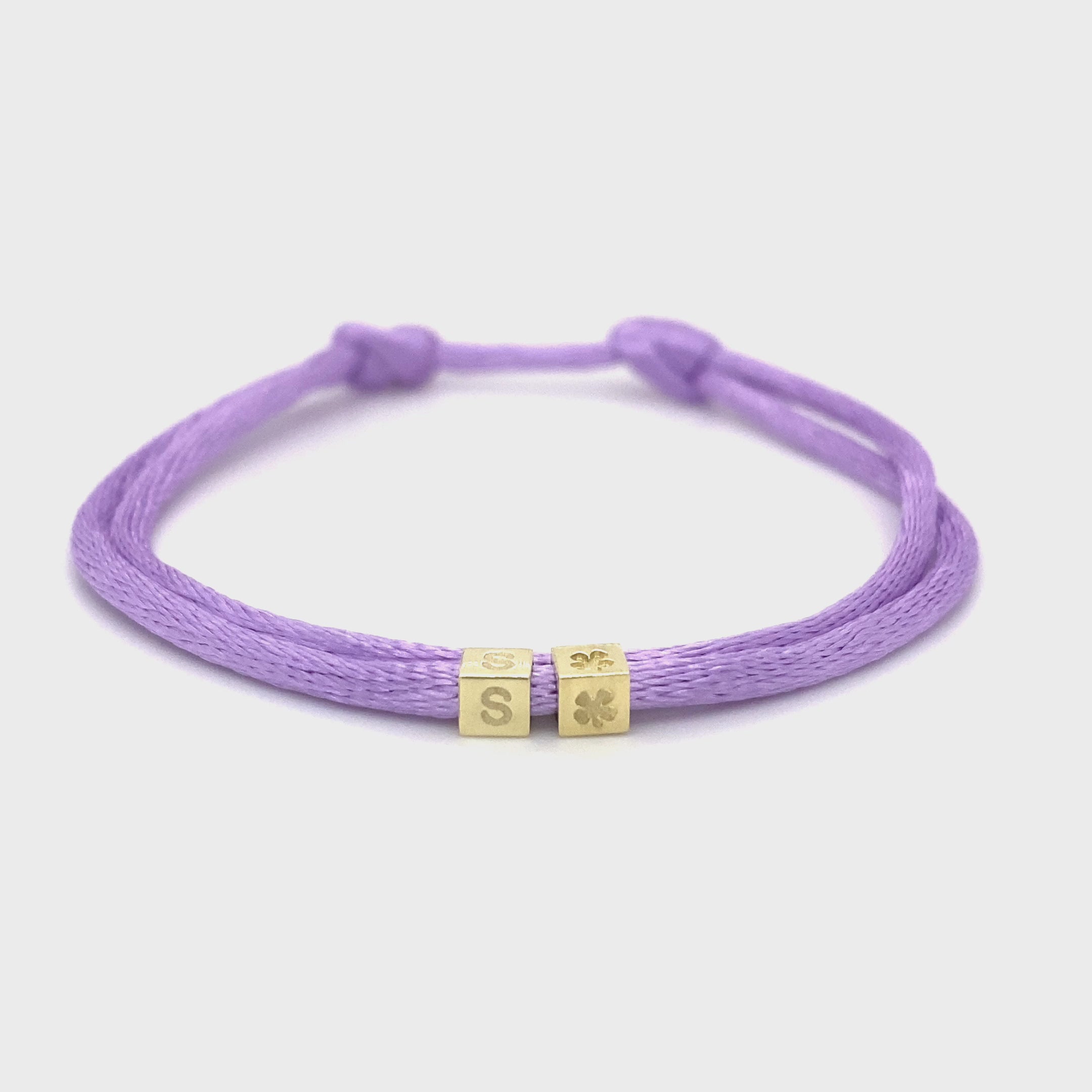 Personalize this Cube Bracelet with an initial or symbol. You can expand the bracelet later with multiple cubes. The color of the satin cord is the color we knot for you around the bracelet. Extra satin cord 1 and extra satin cord 2 are the spare colors. Each piece of jewelry is unique and handmade especially for you by our goldsmiths. Please note: a cube cannot be engraved afterwards.