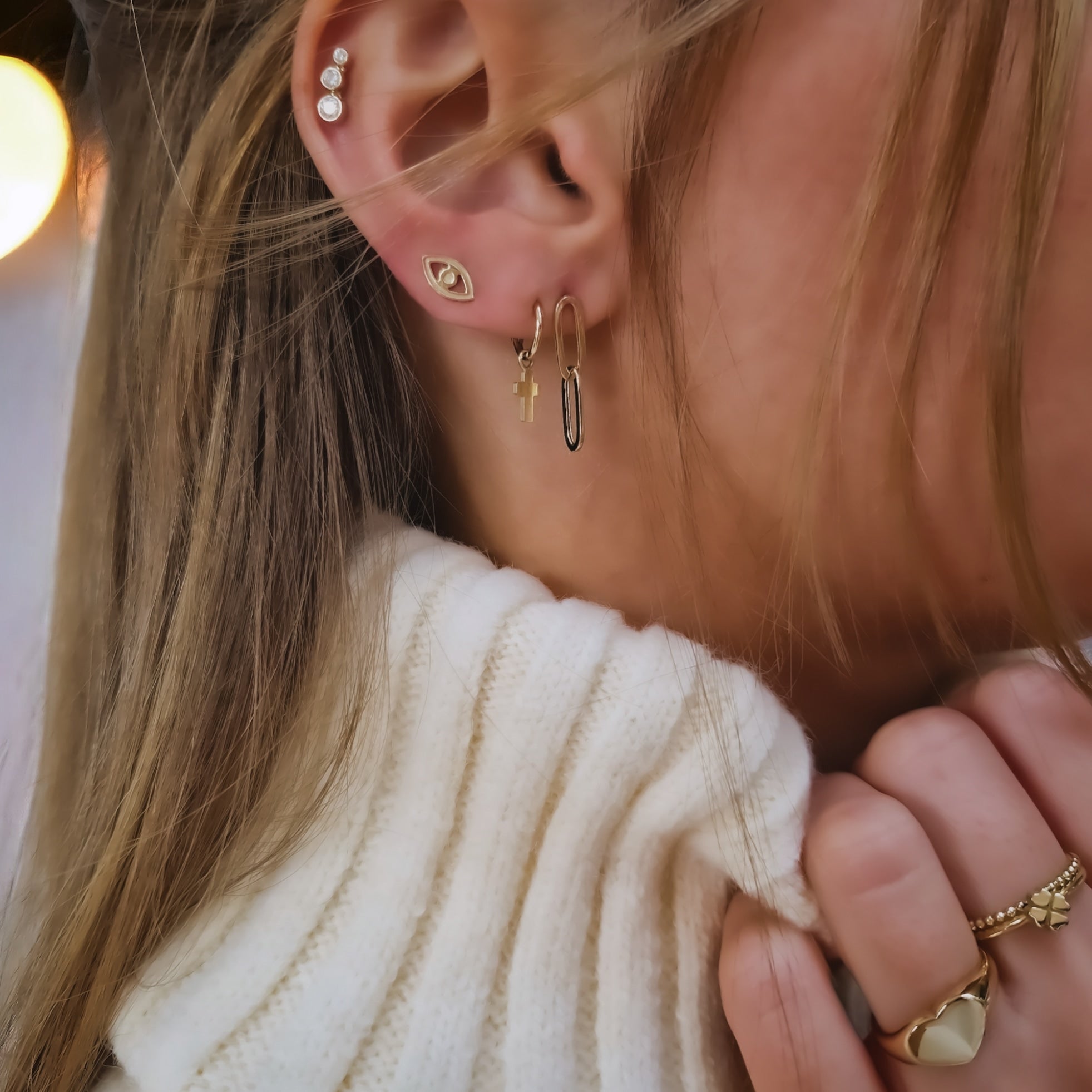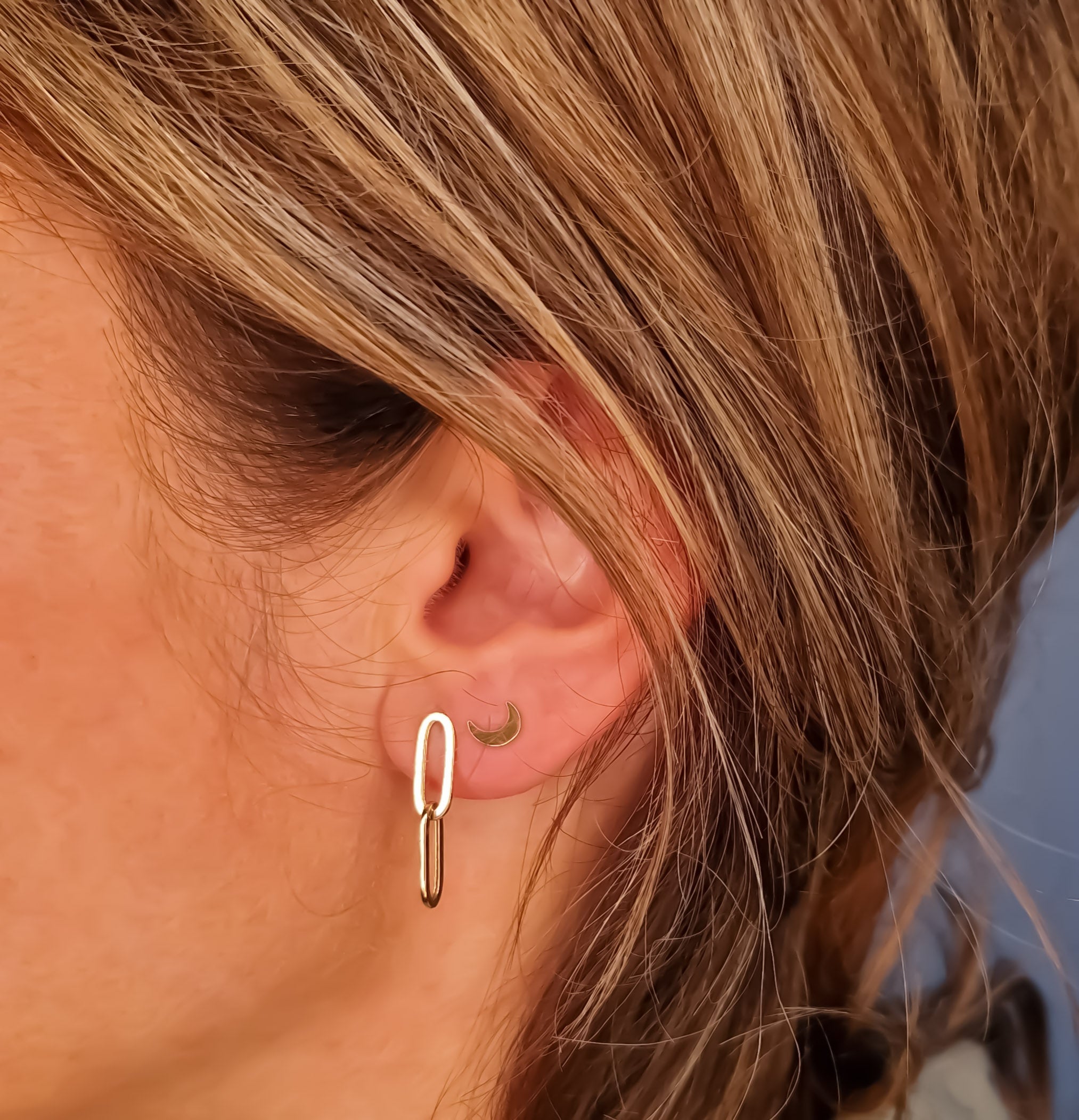 This earring is made of 14 karat gold. It’s sold individually, so you can mix & match endlessly. Of course you also have the option to buy a set. This earring is perfect to combine with other LALOLA earrings to complete your earparty! Each piece of jewelry is unique and handmade especially for you by our goldsmiths.
