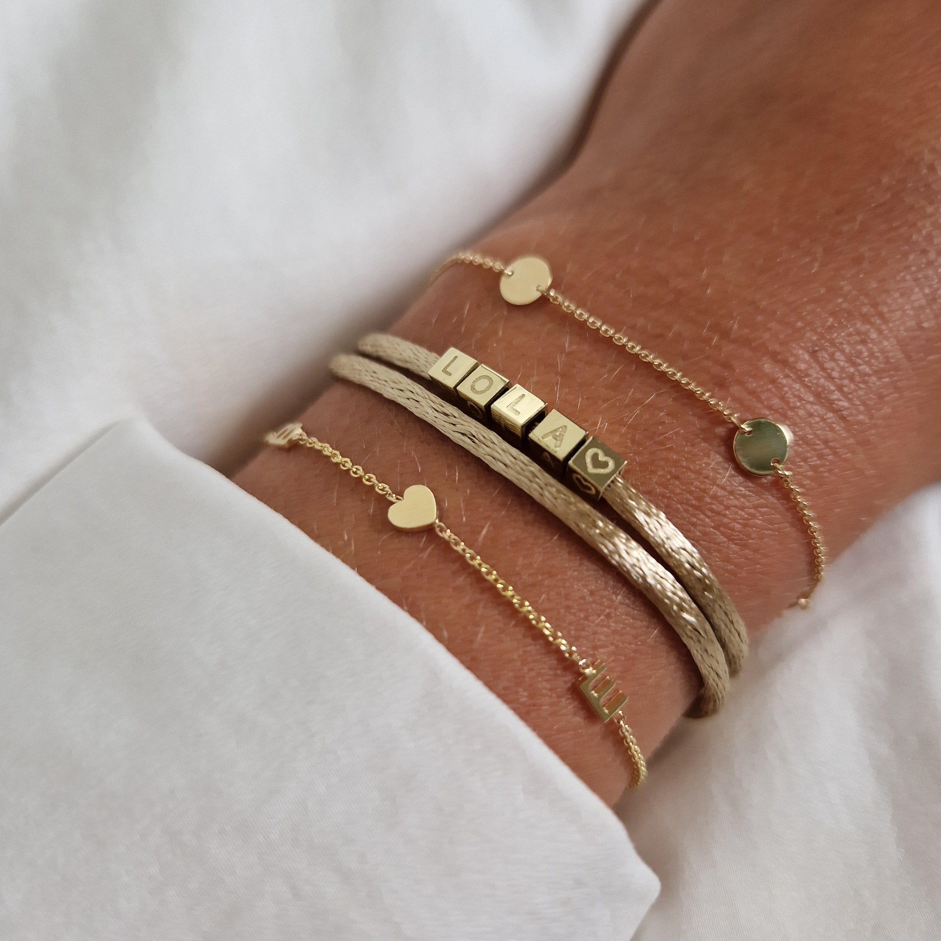 Personaliseer deze Cube Armband met een initiaal of symbool. Je kunt de armband later uitbreiden met meerdere Cubes. De kleur van het satijnkoord is de kleur die wij voor je om de armband knopen. Extra satijnkoord 1 en extra satijnkoord 2 zijn de reservekleuren. Ieder sieraad is uniek en speciaal voor jou handgemaakt door onze goudsmeden. Let op: een Cube kan niet achteraf gegraveerd worden.